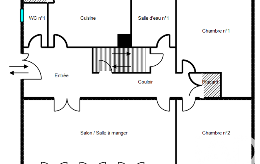 Son entrée dessert un double séjour offrant un accès à la terrasse orientée au Sud, ainsi qu'une cuisine aménagée et équipée séparée. Vous profiterez de deux chambres, d'une salle d'eau aménagée et de WC au rez-de-chaussée.