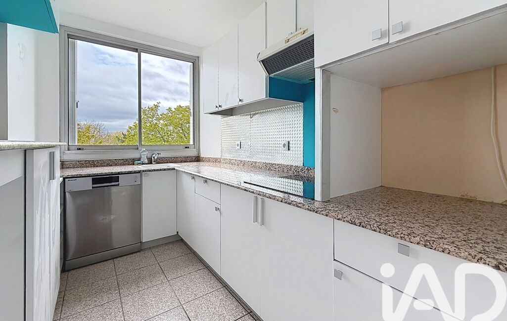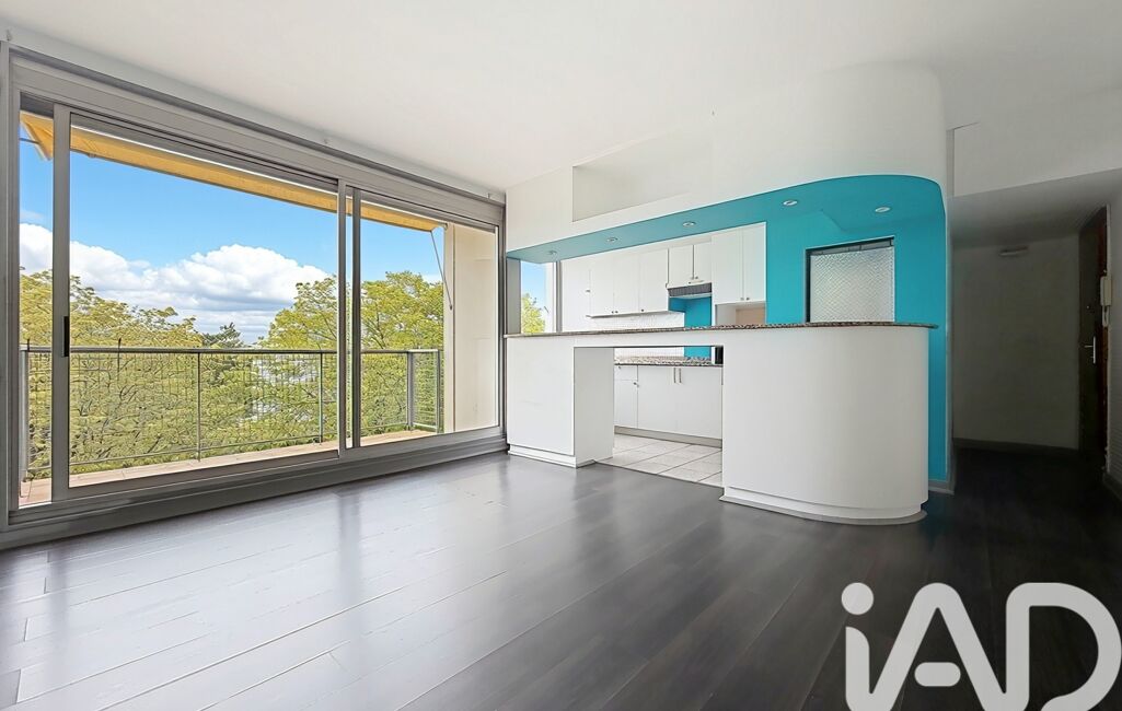 Une cuisine aménagée ouverte sur un séjour spacieux, prolongé par un balcon offrant une vue dégagée sur les environs