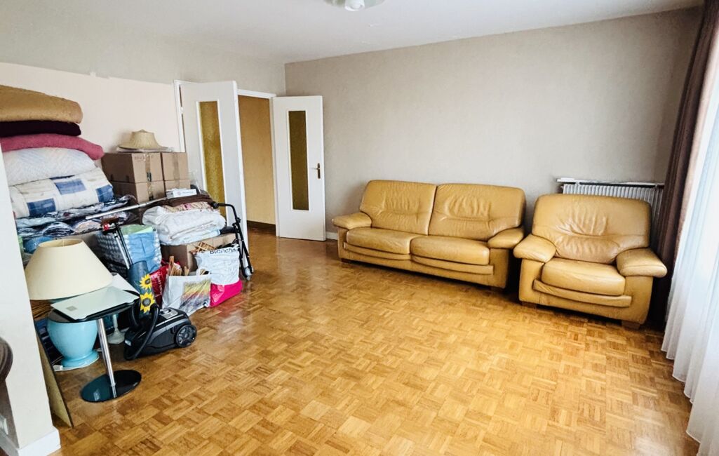 iad France - Sylvie Menu vous propose: Dans une résidence située à proximité immédiate des commerces et de la gare, cet appartement comprend une grande entrée avec placard, un salon avec salle à manger à la suite, une cuisine aménagée et en partie équipée, un cellier puis un couloir de dégagement avec placard qui distribue 2 chambres, 1 salle de bain et WC séparé. Cet appartement en bon état d'entretien est entièrement équipé de double vitrage et de volets électriques. Il est sécurisé avec une porte d'entrée blindée.