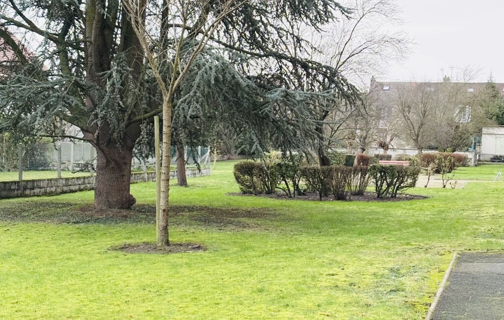 Il est vendu avec une grande cave en sous-sol. La résidence bénéficie d'un jardin privé avec quelques bancs.