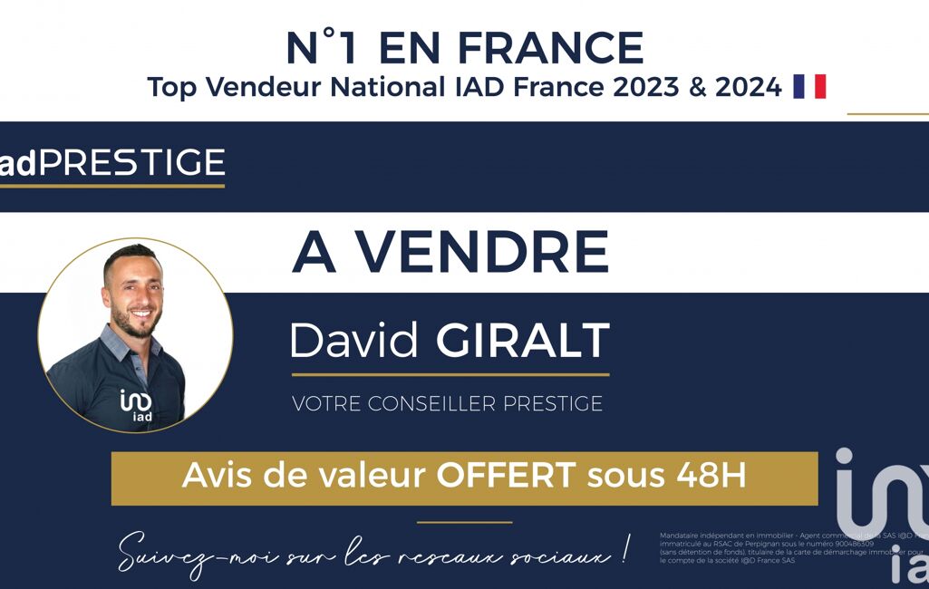 La présente annonce immobilière a été rédigée sous la responsabilité éditoriale de M David Giralt mandataire indépendant en immobilier (sans détention de fonds), agent commercial de la SAS I@D France immatriculé au RSAC de PERPIGNAN sous le numéro 900486309, titulaire de la carte de démarchage immobilier pour le compte de la société I@D France SAS.