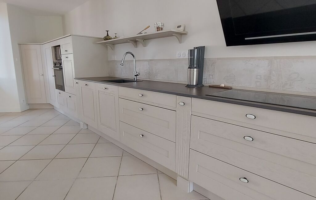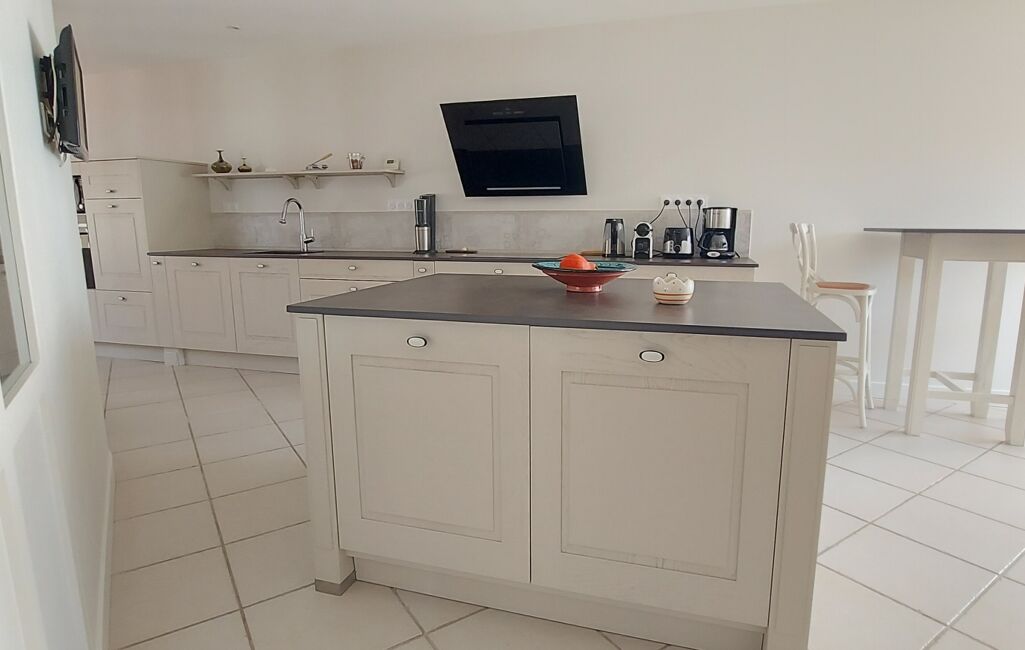 •Une cuisine entièrement aménagée et équipée, avec un îlot, parfaite pour cuisiner en famille ou entre amis.