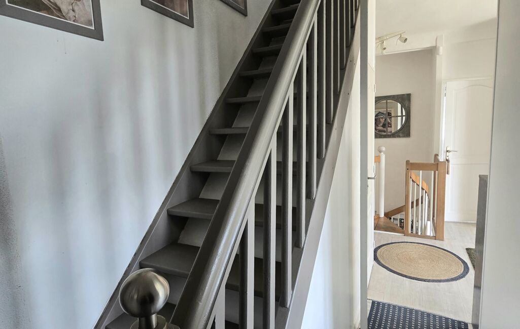 Au 1er étage, un palier dessert une belle chambre, des WC, une SDB et une terrasse ensoleillée, qui offre un second accès à la maison.