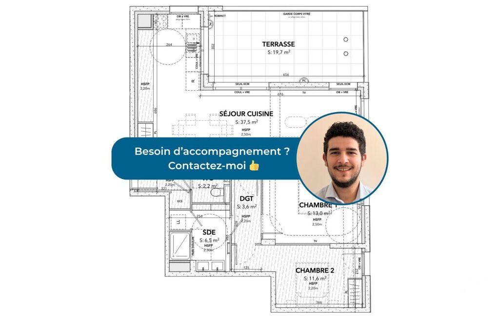 L’appartement présenté est un T3 de 78 m² environ habitables, situé au 1er étage. Il se compose d’un vaste séjour-cuisine lumineux de 37,5 m² environ, de deux chambres spacieuses (13 m² environ et 11,6 m² environ), de deux salles d’eau (6,5 m² environ et 3,9 m² environ), de WC indépendants, ainsi que d’un cellier et d’une entrée avec dégagement. À l’extérieur, une terrasse généreuse de 19,7 m² environ prolonge l’espace de vie et permet de profiter pleinement du climat méditerranéen.