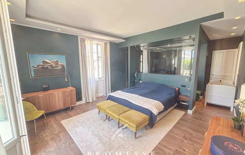 LA PROMESSE vous présente, à deux pas du mythique spot de surf de la Côte des Basques, de la rue Gambetta et ses nombreux restaurants et des Halles de Biarritz, cet élégant appartement de 131 m², au premier étage d'une demeure emblématique, dispose de deux balcons sans vis à vis plein Sud.