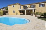 A l’extérieur l’espace piscine sans vis-à-vis, et tout simplement magnifique avec son immense terrasse, son bar, four à pizza et barbecue, entouré du parc où les essences méditerranéennes prédominent.