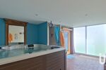 Pour la maison secondaire de 90m2 de surface utile (57m2 habitables) : Entrée sur séjour avec coin cuisine, et à l'étage deux chambres dont une avec mezzanine, une salle de bain et un WC séparé. Celle -ci dispose également d'une grande pièce 'détente' avec son jacuzzi, sa douche à jets hydromassants et son sauna.
