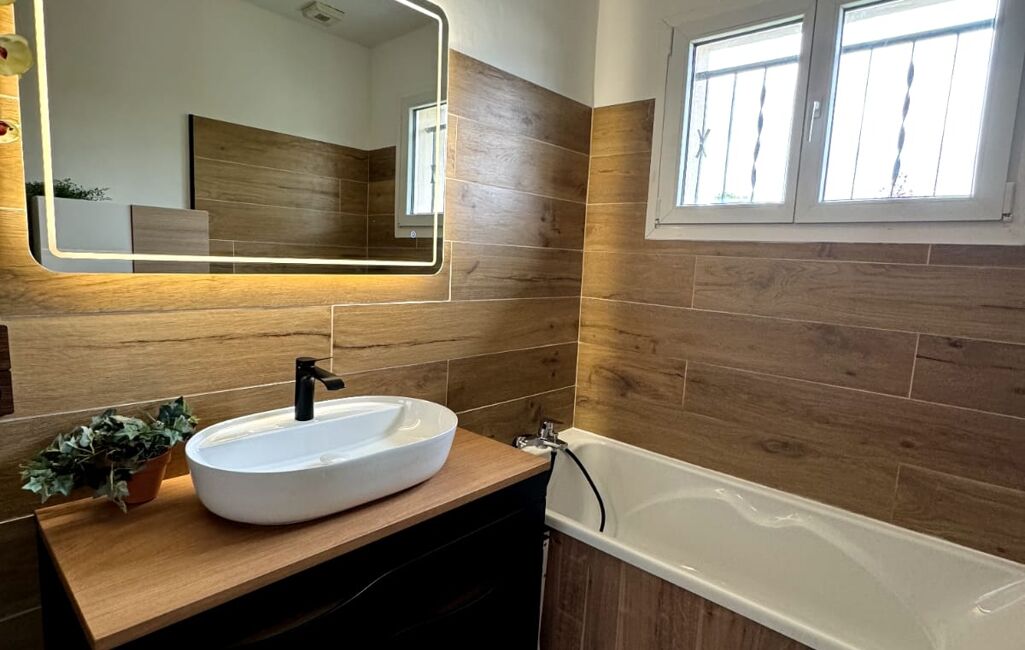 Au rez-de-chaussée, vous trouverez une cuisine équipée séparée, une grande salle à manger lumineuse , 3 chambres, une salle de bain et un wc.