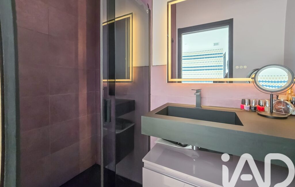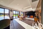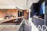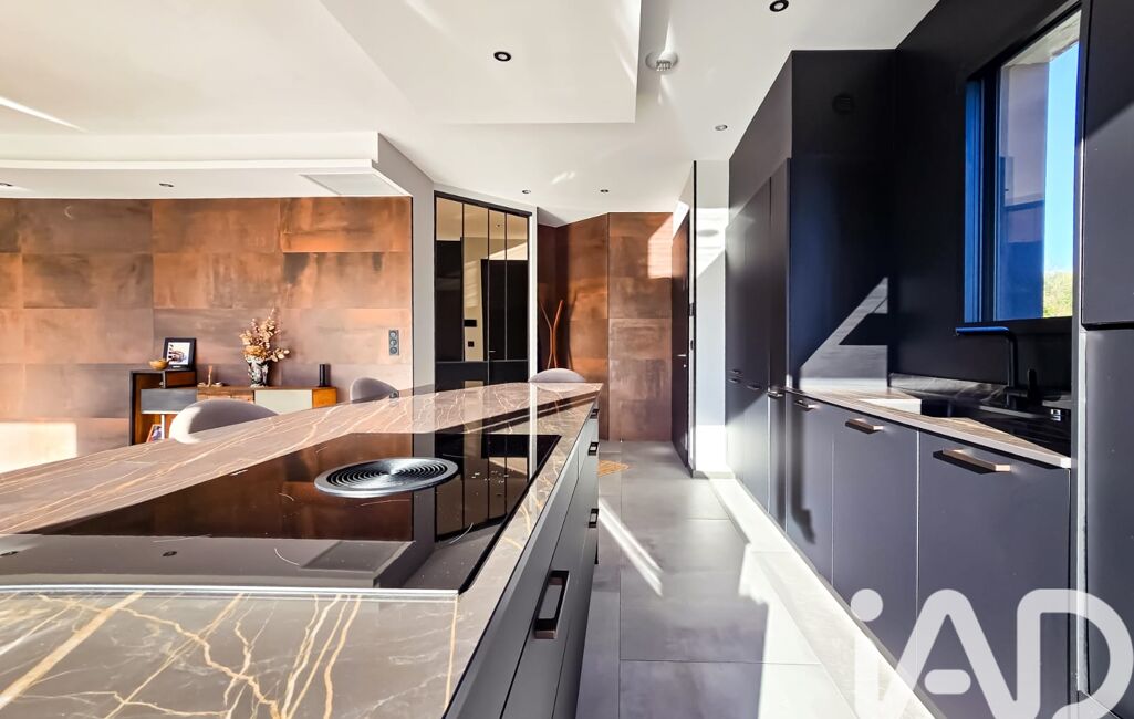 La cuisine, véritable pièce maîtresse, se distingue par son design sobre et sophistiqué, ses nombreux rangements intégrés et son plan de travail en céramique, pensé comme un espace de convivialité pouvant accueillir plusieurs convives. Elle s’ouvre naturellement sur l’espace salle à manger et le salon, tous deux tournés vers la terrasse et le jardin.