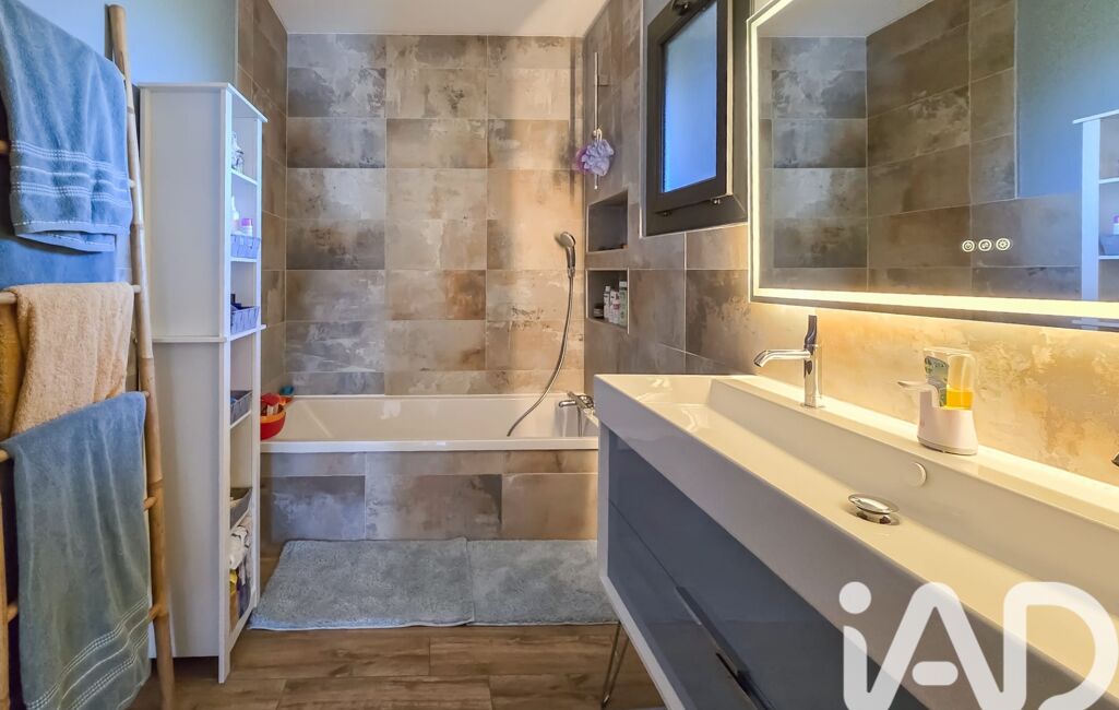 •Une salle de bains avec baignoire et double vasque