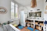 Rénovée avec goût en 2018, cette maison atypique est idéale pour une famille. Elle séduit par ses beaux volumes, sa luminosité grâce à ses nombreuses ouvertures et la conservation de certains éléments anciens : parquet d’origine, cheminée, etc.