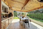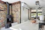 Dès l’entrée, la pièce de vie invite à ralentir. Baignée de lumière, réchauffée par un poêle à bois et tempérée par une climatisation réversible, elle prolonge ses volumes vers de généreuses terrasses. Ici, intérieur et extérieur dialoguent librement, offrant des espaces de vie où chaque moment trouve sa place, du café du matin aux longues soirées d’été.