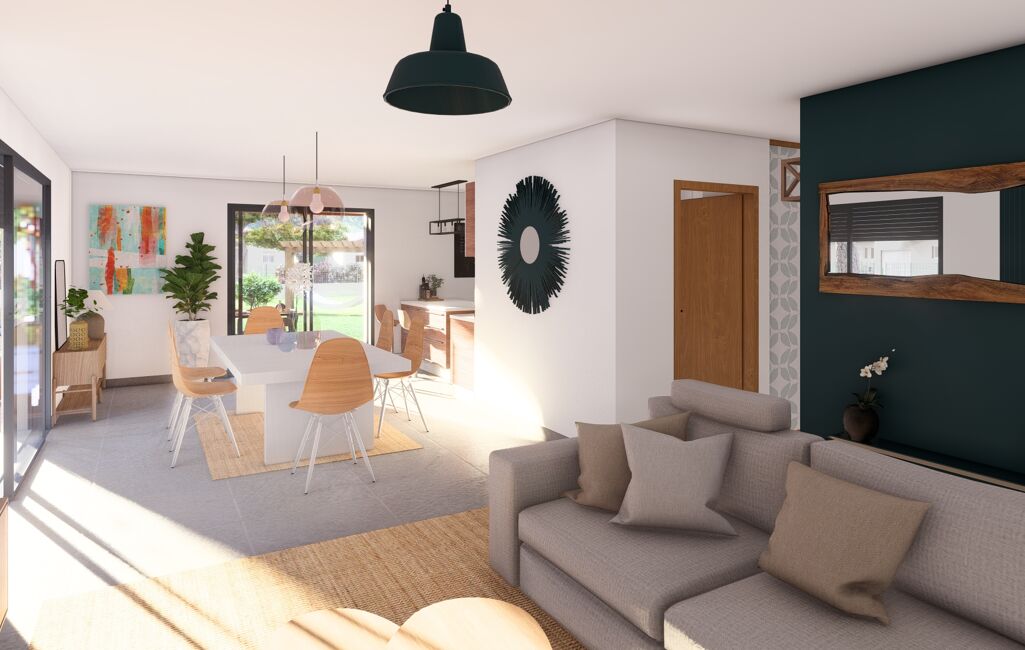 Cette future construction est composée d’une belle pièce de vie de près de 45m², baignée de lumière grâce à sa double orientation. Une très confortable terrasse couverte prolonge ce bel espace de vie.