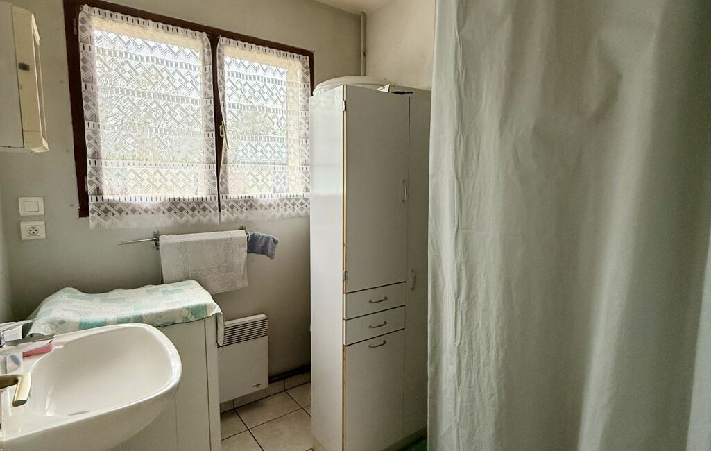 La maison principale se compose d’une entrée avec placard, d’un séjour/salon lumineux, d’une cuisine aménagée, d’un WC indépendant, d’une salle de douches ainsi que de deux chambres.