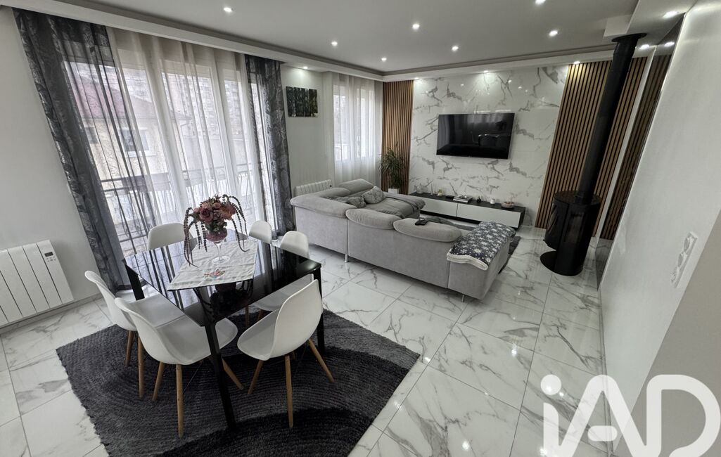 Au rez-de-chaussée, vous découvrirez une entrée ouverte sur une cuisine moderne, équipée, aménagée et parfaitement agencée, donnant sur un séjour lumineux avec salle à manger, sublimé par un poêle à bois pour une ambiance chaleureuse.