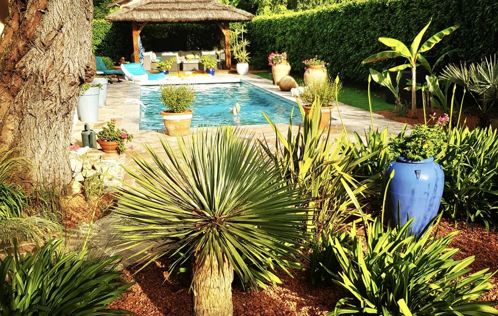 - Jardin méditerranéen paysager (palmiers, oliviers, agapanthes)