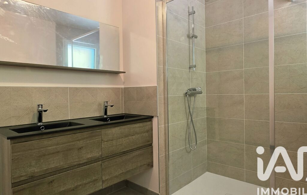 - **Plain pied :** Vous découvrirez une entrée sur le séjour très lumineux avec cuisine aménagée et équipée un dégagement avec un local technique, wc séparé, salle d'eau avec meuble double vasque et une douche, deux chambres.