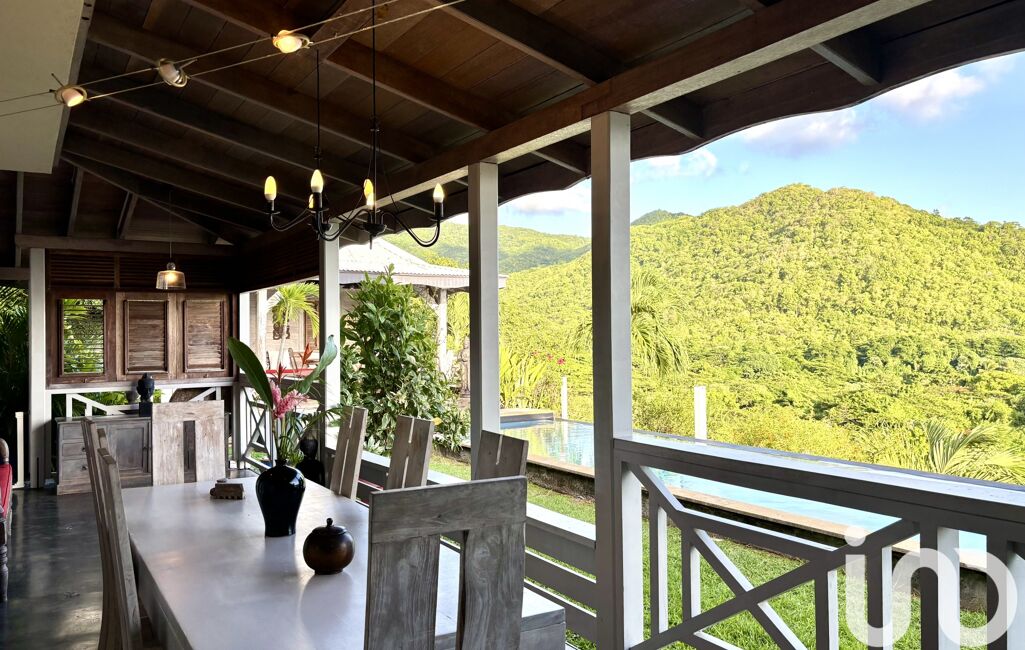 Cette villa est atypique de par ses aspirations à la fois caribéennes et balinaises. En extérieur, les deux carbets en sont le parfait exemple. Deux lieux de vie pour se reposer et admirer le coucher de soleil. Pour se rafraichir, une magnifique piscine à débordement complète à merveille ce bien unique. Nous terminons la visite dans le jardin et son solarium à couper le souffle. Une propriété unique à tout points de vue. Je suis à votre écoute pour toutes demandes d'informations complémentaires et visites. Parmi les petits détails importants : La villa est vendue meublée. Elle est reliée au tout à l'égout, les suites sont climatisées, deux parkings et un garage complètent le bien. Pour tout investissement, la villa a une très belle rentabilité, je serai ravie d'en discuter avec vous lors d'une visite. - SOUS OFFRE -