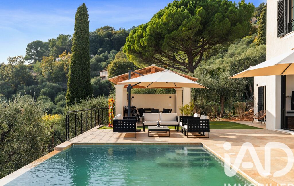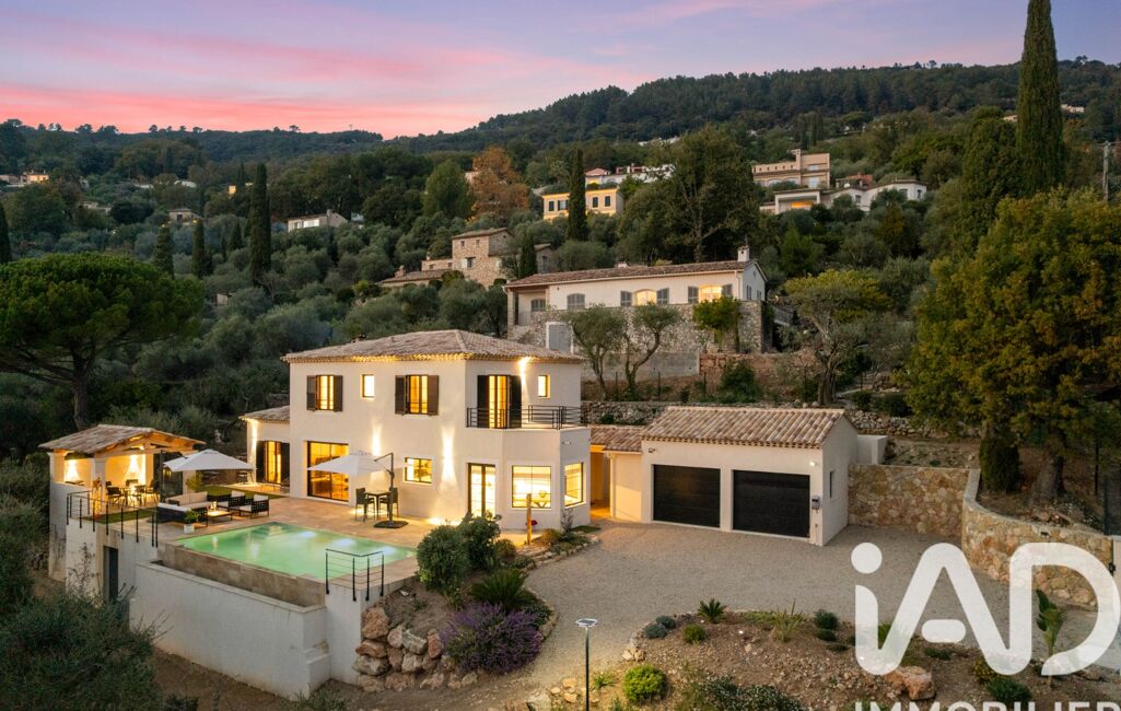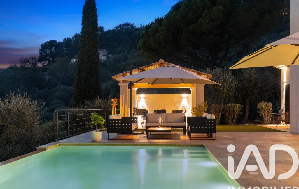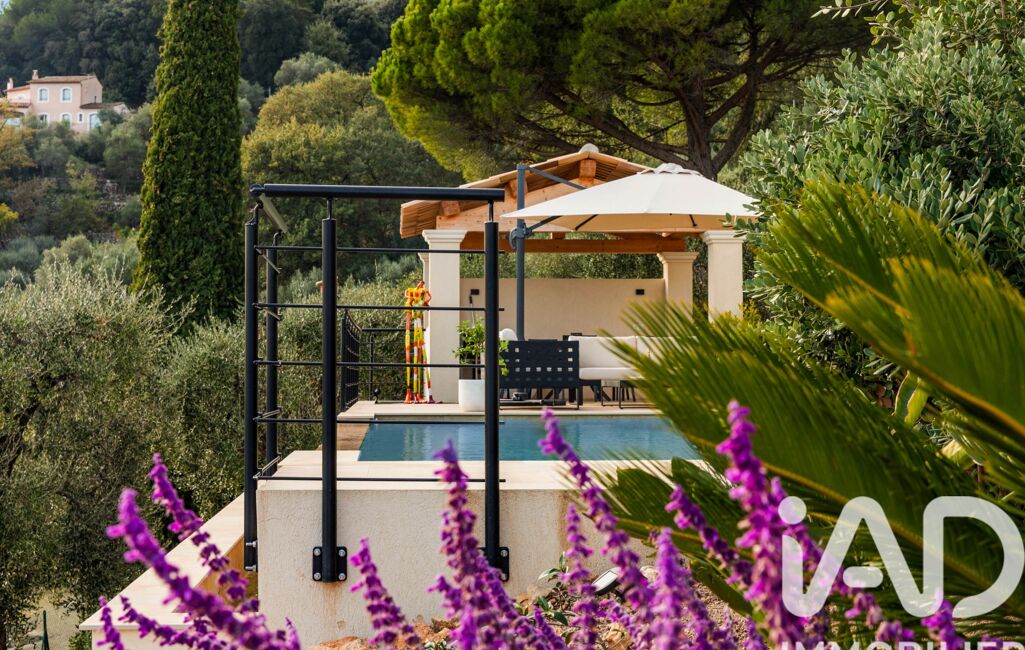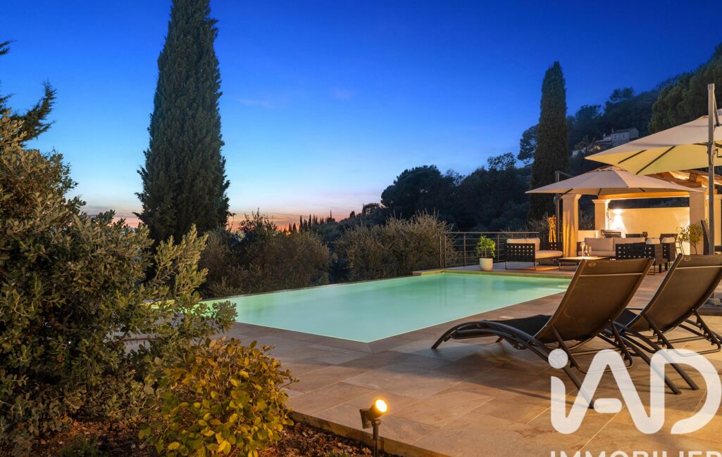 Les extérieurs constituent un véritable lieu de vie : terrain paysagé de 1 250 m² accueillant 22 oliviers et diverses essences méditerranéennes, piscine à débordement de 50 m³ avec traitement UV et éclairage nocturne, pool house, abri de jardin, trois terrasses, trois places de stationnement, ainsi qu’un double garage isolé de 33 m².