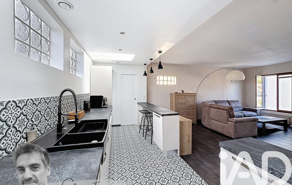Au rez-de-chaussée, un séjour traversant de 48 m² séduit par sa belle hauteur sous plafond (2,73 m). Cet espace de vie chaleureux, agrémenté d’une cuisine ouverte équipée, offre la possibilité d’installer un insert.