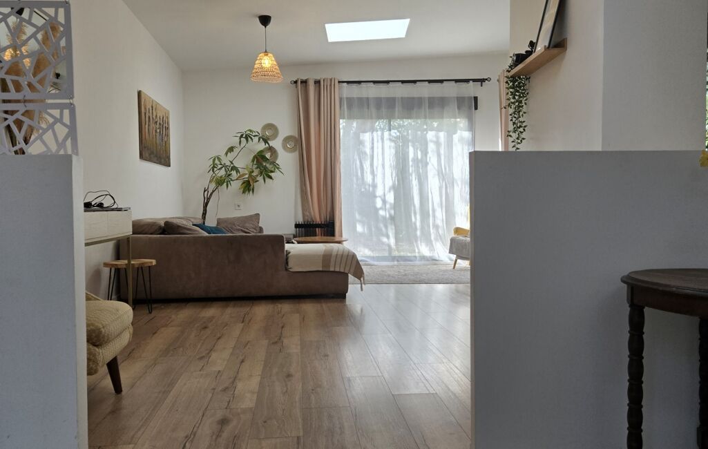 Au rez-de-chaussée, vous découvrirez d'abord un espace de vie lumineux et chaleureux, avec un accès direct à une belle terrasse à l'arrière de la maison et à l'abri des regards. Vous trouverez également une cuisine entièrement équipée et une agréable salle à manger, donnant aussi accès au jardin par de larges baies vitrées. Une chambre et un WC séparé complètent ce rez-de-chaussée.