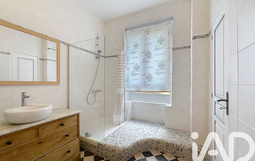 * Une salle d'eau avec un meuble double vasques, une grande douche et des toilettes