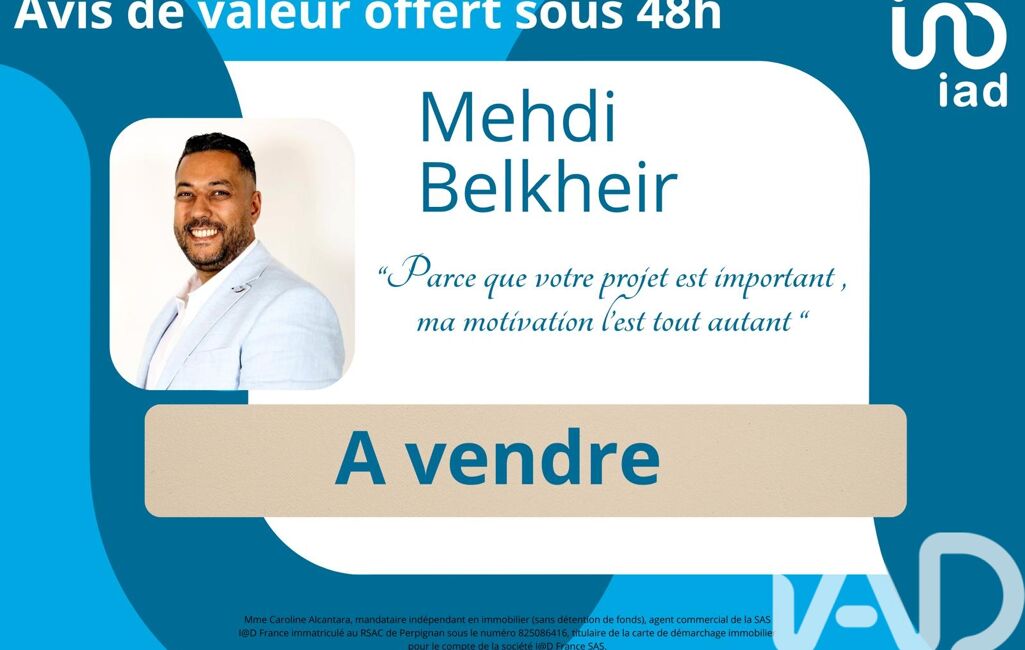 La présente annonce immobilière a été rédigée sous la responsabilité éditoriale de M Medjide Belkheir mandataire indépendant en immobilier (sans détention de fonds), agent commercial de la SAS I@D France immatriculé au RSAC de Perpignan sous le numéro 948481387, titulaire de la carte de démarchage immobilier pour le compte de la société I@D France SAS.
