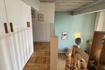 Côté pratique, l'entrée est délimitée grâce au plafond plus bas avec de grands placards.