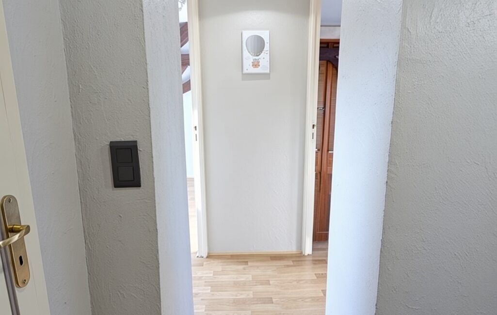 À l’étage un couloir dessert une chambre parentale avec sa salle d’eau, trois autres chambres, un WC séparé avec lave mains.