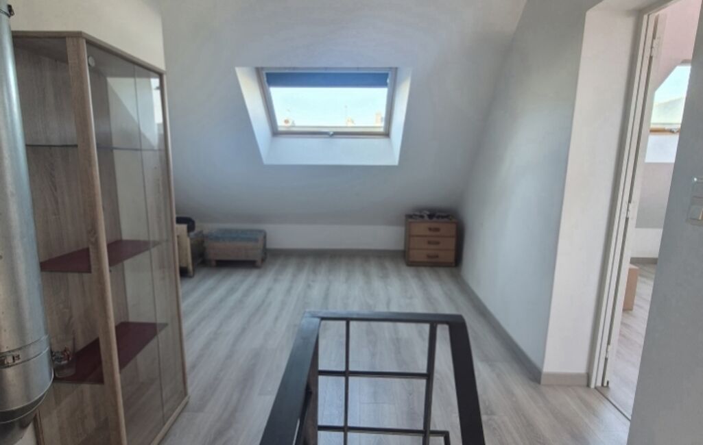Le dernier étage propose un grand palier aménagé en second espace bureau, idéal pour le télétravail, ainsi qu’une belle chambre lumineuse.
