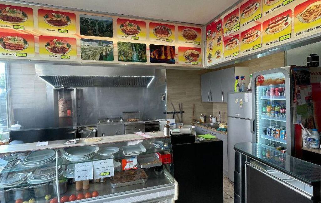- Une cuisine équipée de 21m2 environ avec matériel de kebap, réfrigérateur, table réfrigérée, plaque et friteuse, machine à kebap,...
