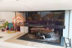 -1 pièce de vie traversante de 31m² avec sa cheminée en pierre de taille sur mesure équipée d'un insert escamotable pour l'ouverture du foyer à votre convenance et d'une cuisine ouverte équipée de ses éléments ( L. Vaisselle - Plaque de cuisson gaz - Hotte - Four )