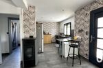 La maison bénéficie d’un chauffage électrique complété par un poêle à granulés, assurant un confort thermique optimal en toute saison. Les fenêtres en double vitrage aluminium et les volets motorisés apportent une isolation efficace et un confort supplémentaire au quotidien.