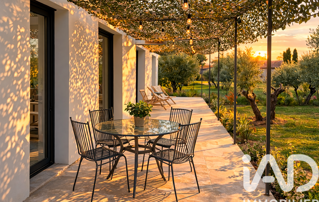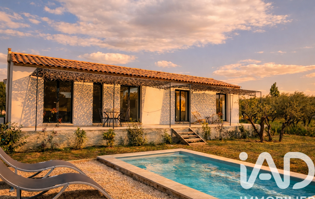 iad France - Pauline Gueusquin Gilles vous propose: À seulement 3 minutes d’Uzès, sur la commune de Saint-Maximin, découvrez cette maison de plain-pied construite en 2024, dans un environnement calme.