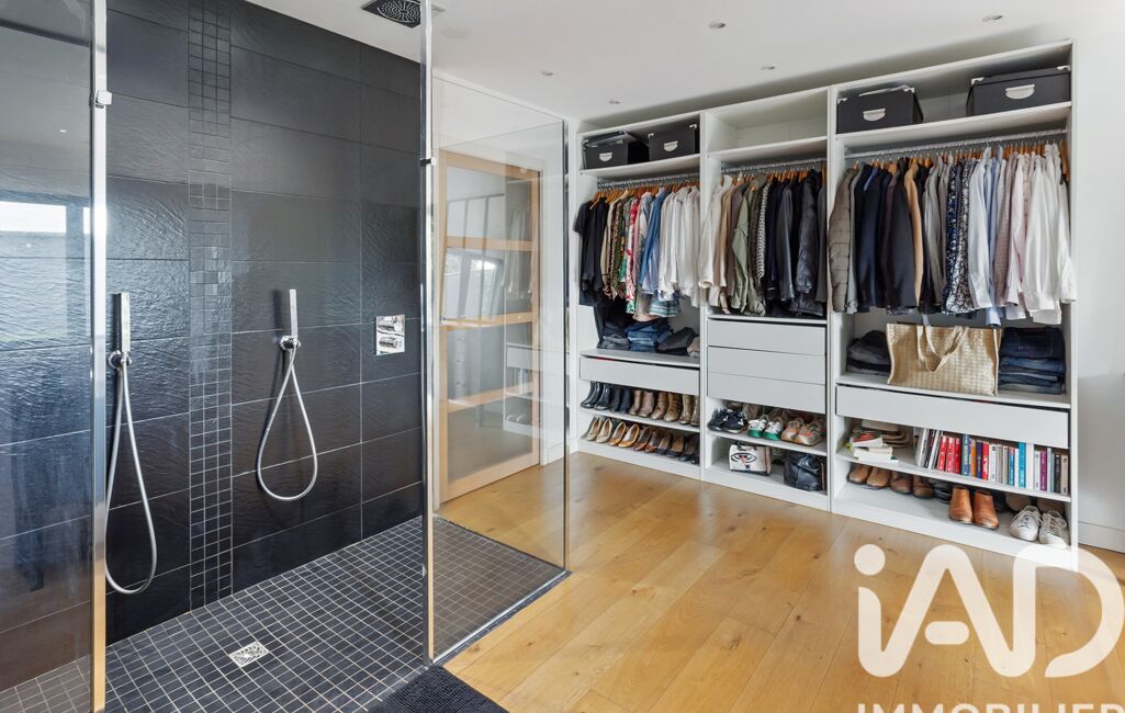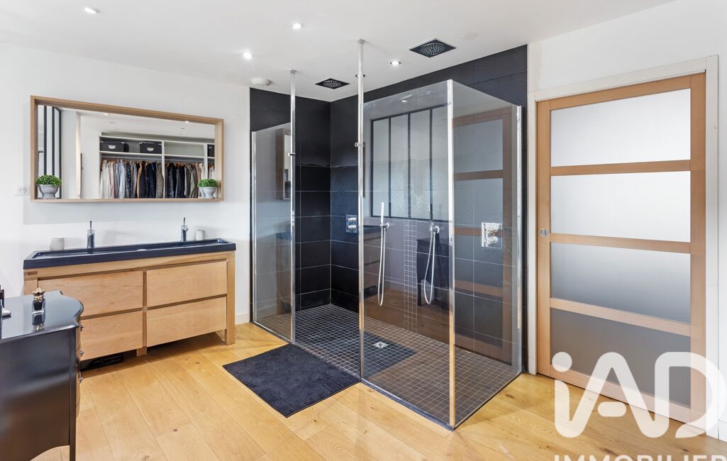 À l’étage : trois grandes chambres avec chacune leur salle d’eau, WC et espace bureau.