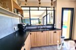 La cuisine, fermée mais semi-ouverte grâce à une verrière coulissante, allie parfaitement convivialité et praticité.