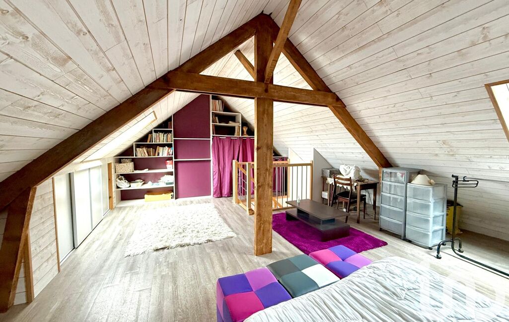 Une grande chambre aménagée sous les combles.