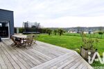 Au Rez-de-chaussée sur 97 m² : Entrée avec placards de rangements sur une grande pièce de vie lumineuse et traversant de plus de 68 m² avec plusieurs accès à la terrasse exposé SUD -- La cuisine est aménagée et équipée, le salon de 23 m² est séparé du séjour par une porte à Galandage, accès à la terrasse en bois exotique de 70 m² par des portes à galandages --- Espace parental de 22 m² composé d'une chambre, d'une salle d'eau attenante avec douche et meuble double vasque, d'un dressing --- WC séparé équipé d'un lave-mains --- Arrière cuisine buanderie de 5 m² ---