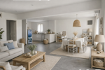 La pièce de vie de 45 m², spacieuse et baignée de lumière, accueille une cuisine aménagée et équipée, ouverte sur un séjour convivial, idéal pour recevoir.