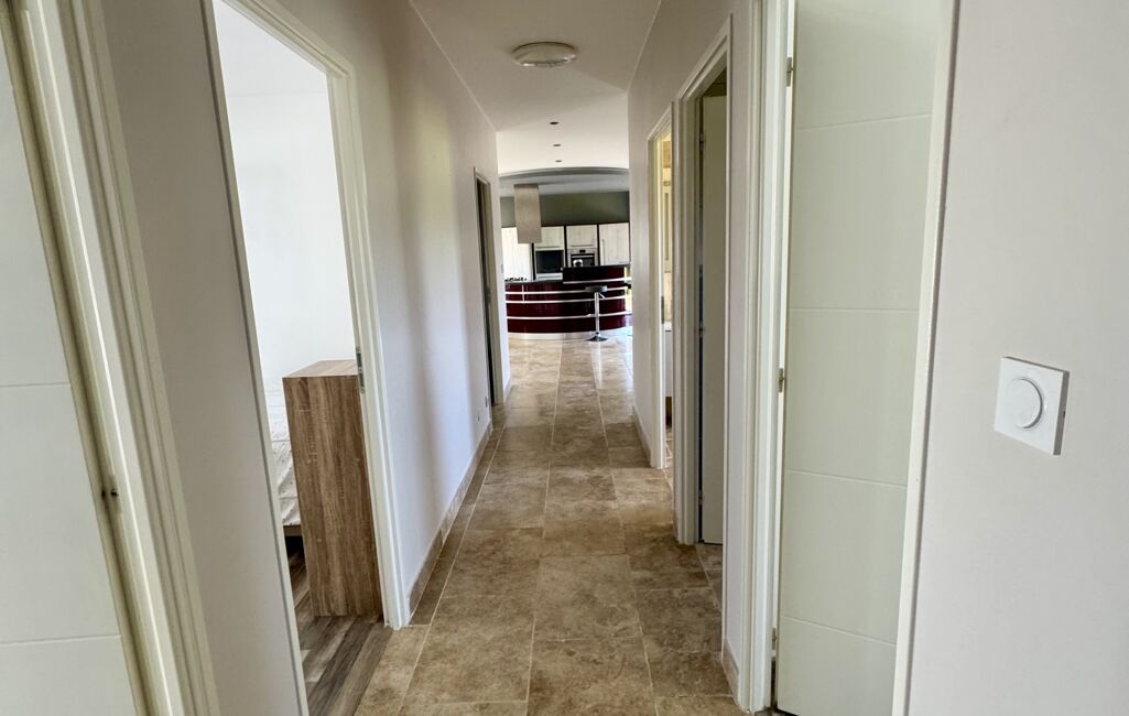 Elle se compose d'une pièce de vie lumineuse (cuisine/salon/séjour) de 55m², un couloir dessert 3 chambres (12/12/11m²), une salle d'eau de 7m², une buanderie de 6m² ainsi qu'un WC indépendant.