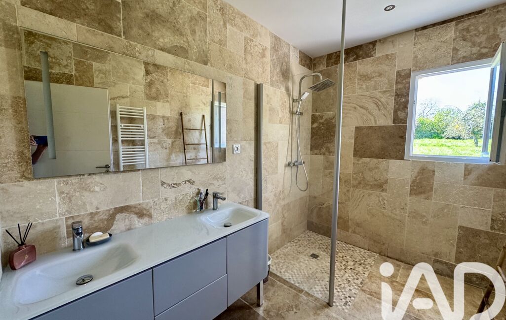 La maison est équipée d'ouvertures en PVC double vitrage avec volets roulants électriques, chauffage par pompe à chaleur réversible, chauffe-eau thermodynamique, fibre raccordable, assainissement collectif conforme.