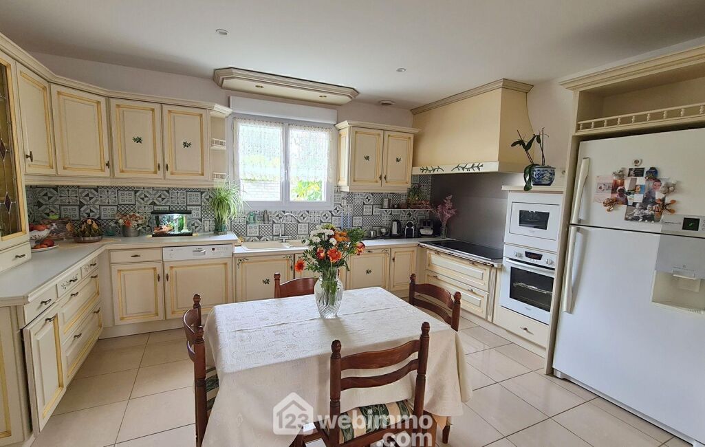 Dès l'entrée, les volumes généreux et la qualité de l'agencement séduisent immédiatement. Vous découvrirez une vaste entrée ouvrant sur un triple séjour baigné de lumière de 53 m², agrémenté d'un poêle à bois, et prolongé par une salle à manger conviviale. La cuisine spacieuse et entièrement équipée de 17 m² ravira les amateurs de gastronomie et de moments partagés.
