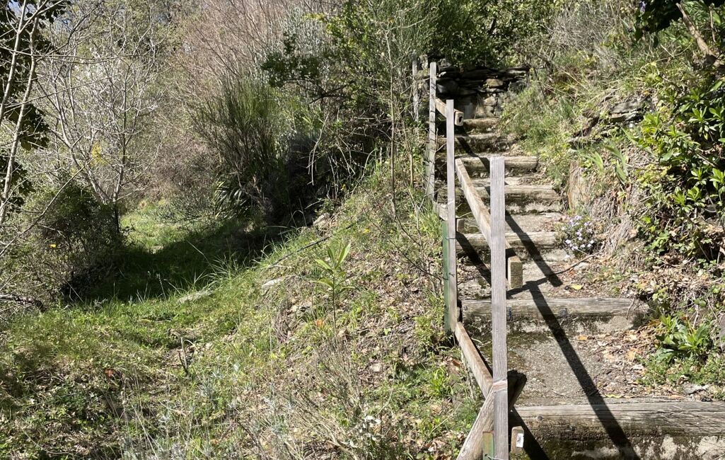 L'accès a proximité du Mas se fait par une piste avec un véhicule adapté, puis par une ascension à pied par le sentier ou des marches pour arriver sur la terrasse orientée plein sud au porte du Mas.