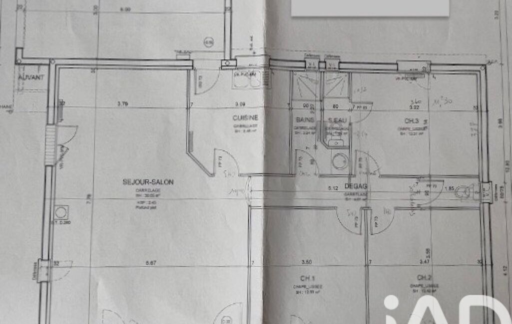 Intérieur : Séjour lumineux 40 m² environ, cuisine séparée, 3 chambres (dont 1 suite parentale), salle d’eau, 2 WC.