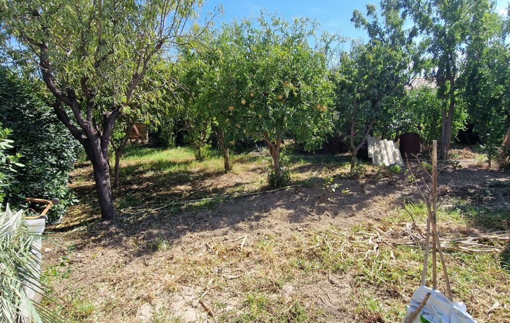 Une parcelle de 2 440 m² avec forage, grand jardin arboré (agrumes et arbres fruitiers), nombreuses places de stationnement et large allée.