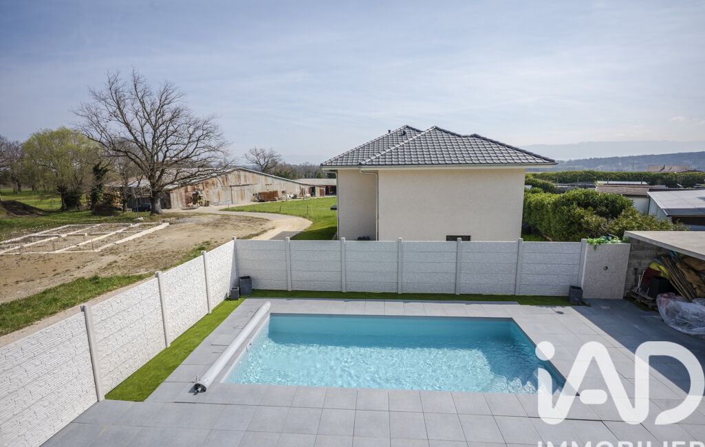 iad France - Julien Bouret vous propose: Villa contemporaine 2024 – Piscine – Vue Golf, Mont-Blanc & Jura – Prestations haut de gamme