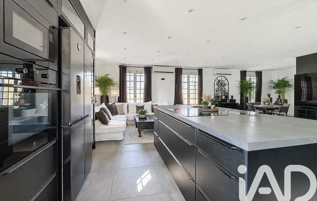 La pièce de vie, baignée de lumière grâce à ses expositions nord, sud et ouest, s’organise autour d’une cuisine contemporaine aux prestations soignées, véritable cOEur de la maison