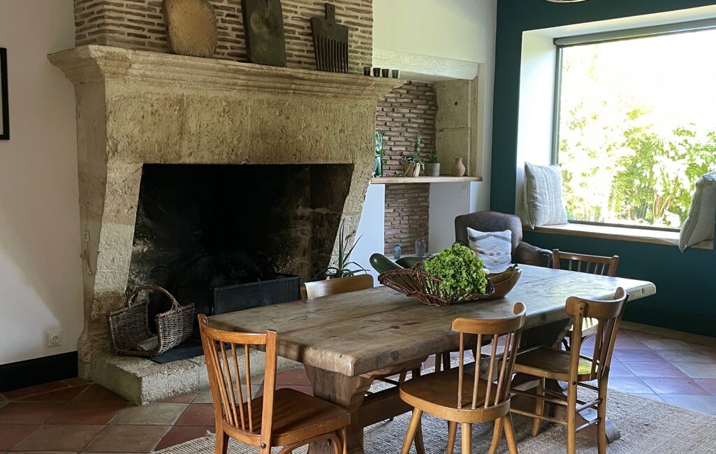 La rénovation contemporaine chic n'a rien ôté au charme de la maison. Les murs sont en pierres apparentes, les sols d'autrefois, les immenses cheminées devant lesquelles on se love l'hiver, sont toujours là. Une élégance discrète.