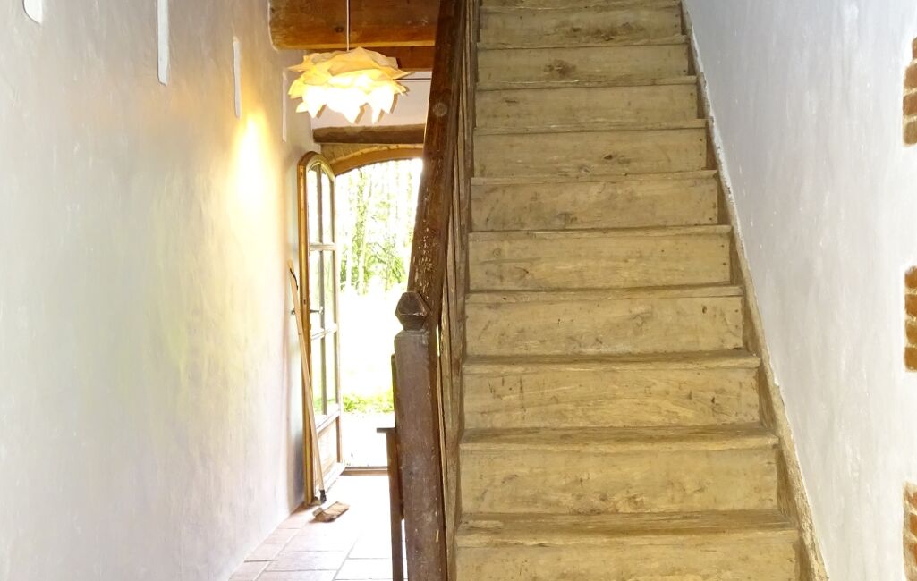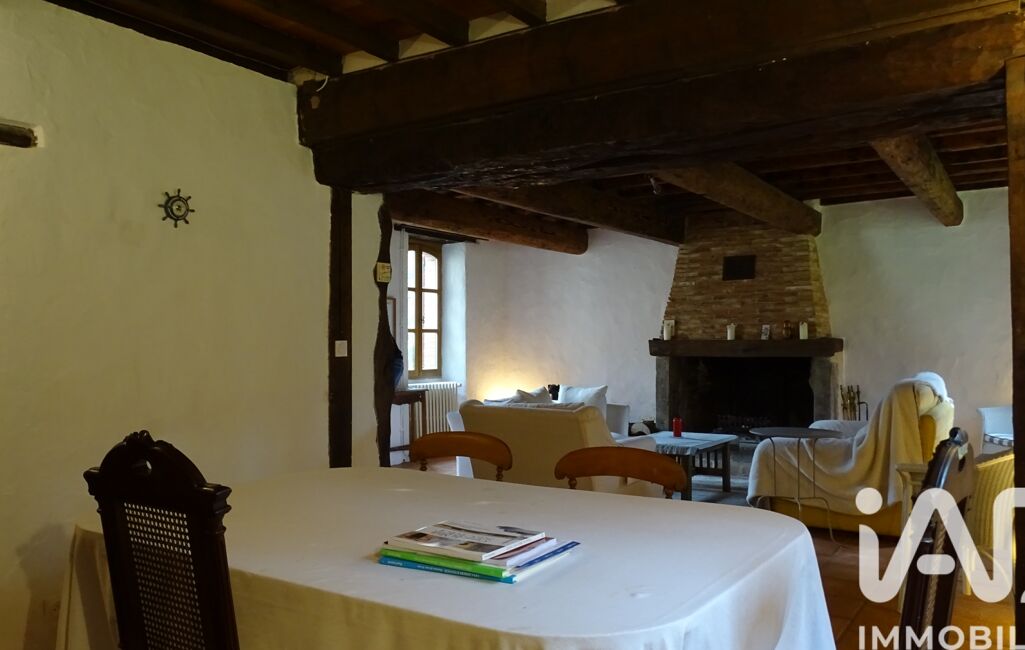 L'entrée principale vous mène dans une belle pièce à vivre comprenant un salon de 15 m² avec une grande cheminée, poutres apparentes et tomettes au sol et une salle à manger de 27 m² lumineuse et conviviale.