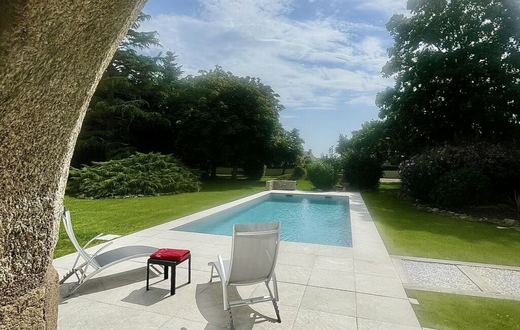 Le jardin est un agréable parc avec piscine récente, un vaste espace détente ombragé de type préau avec une cuisine d'été propice pour recevoir en toute convivialité.